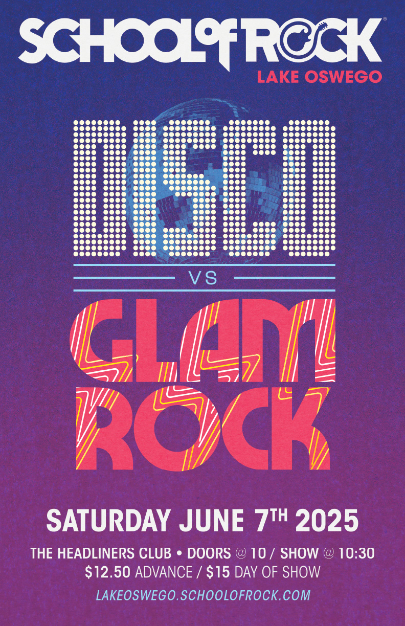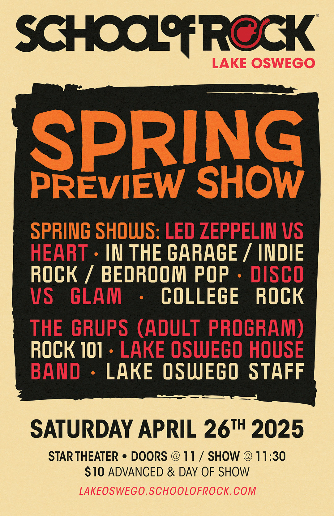A series of posters promoting the season shows at the Portland and Lake Oswego School of Rock.